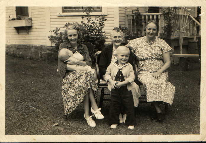 | This picture was taken at the Garson home in Strum, Wisconsin, on June 26, 1938. The photo was taken during a celebration of Grandma Garson's (Clara Frodahl Garson) 80th birthday. Left to Right: Carla Matson Nymo (presumably with Jon); Clara Garson (with Rolf in front); and Marie (or Mary) Garson Matson. I see a lot of pride in this picture! This home and property was owned by Nels and Clara Garson. Later residents included Thora and Otto Anderson (Thora was a daughter of Nels and Clara); Mariann and Stanley Berg (Mariann is a granddaughter of Nels and Clara, daughter of their daughter, Marie); and more recently is owned by a granddaughter of Mariann and Stanley. The home is located on the north side of U. S. Hiway 10, just east of Strum, right across from the golf course. Many a family celebration has taken place there. Next to this property, to the west, is the forever famous (at least to kids of my time) Garson hill. Facing south, this steep hill was the skiing and sleding playground for many children in the Strum area. The Garson hill was joined by the Eide hill(s) on the west. Between the two hills, one could slide or ski nearly forever in multiple directions. Both the Eide and Garson hills are a back drop to the old elementary school and made a wonderful time at recess and noon hour......to say nothing about before and after school! There are many stories that stem from this property, but one sticks especially well in my mind: The story goes...Thora and Otto Anderson lived here for many years. U.S. Hiway 10 runs perpendicular to the property driveway. Otto, a master pattern maker, when he went to town, would back his car south out of this long driveway, toward Hiway 10. He would routinely look straight ahead and use his rear view mirror, picking up the mail box that was centered on the driveway and on the south edge of the hiway. This particular day, Otto started his trip backwards, moving more and more backwards, but could not see the mail box in his mirror. He kept backing up hoping to pick it up, I guess. The mail box always appeared in time. Never did this time, however! Someone had knocked over the mail box the night before. And Otto and his car.........well, you can imagine........both found the ditch on the south side of Hiway 10! And not a drop of alcohol involved. |